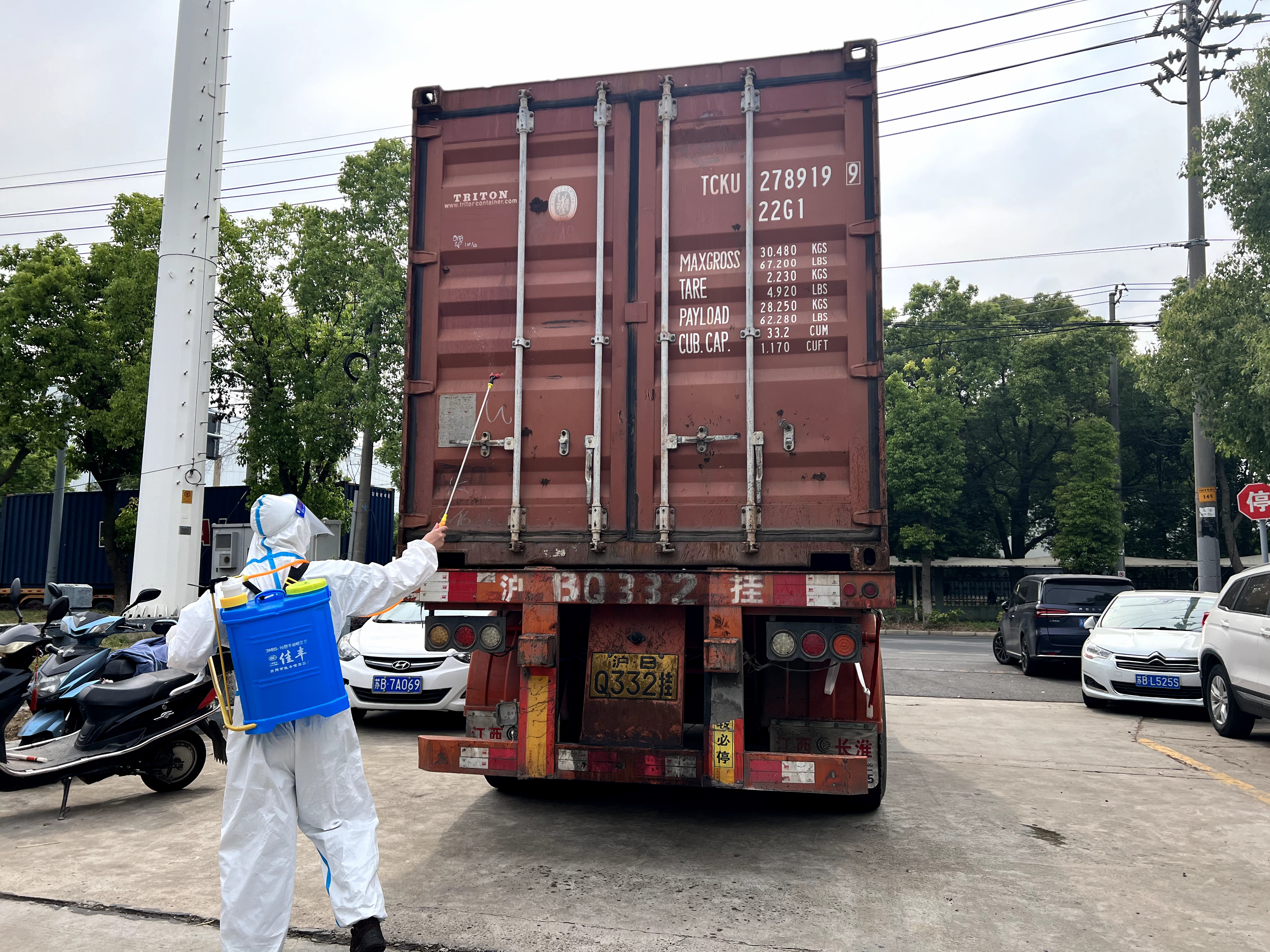 Step 4: After the loading was completed, factory personnel disinfected the container and truck again, and then sent the truck driver to the highway entrance, and the entire journey of the truck driver needed to be videotaped again.