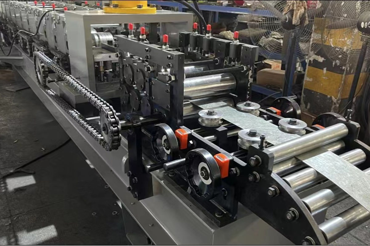 Due to the heavy duty materials a rolling shutter door rail roll forming machine usually bends, there are two types of transmission available for customers to choose: Chain-brackets transmission and Gear-box transmission.