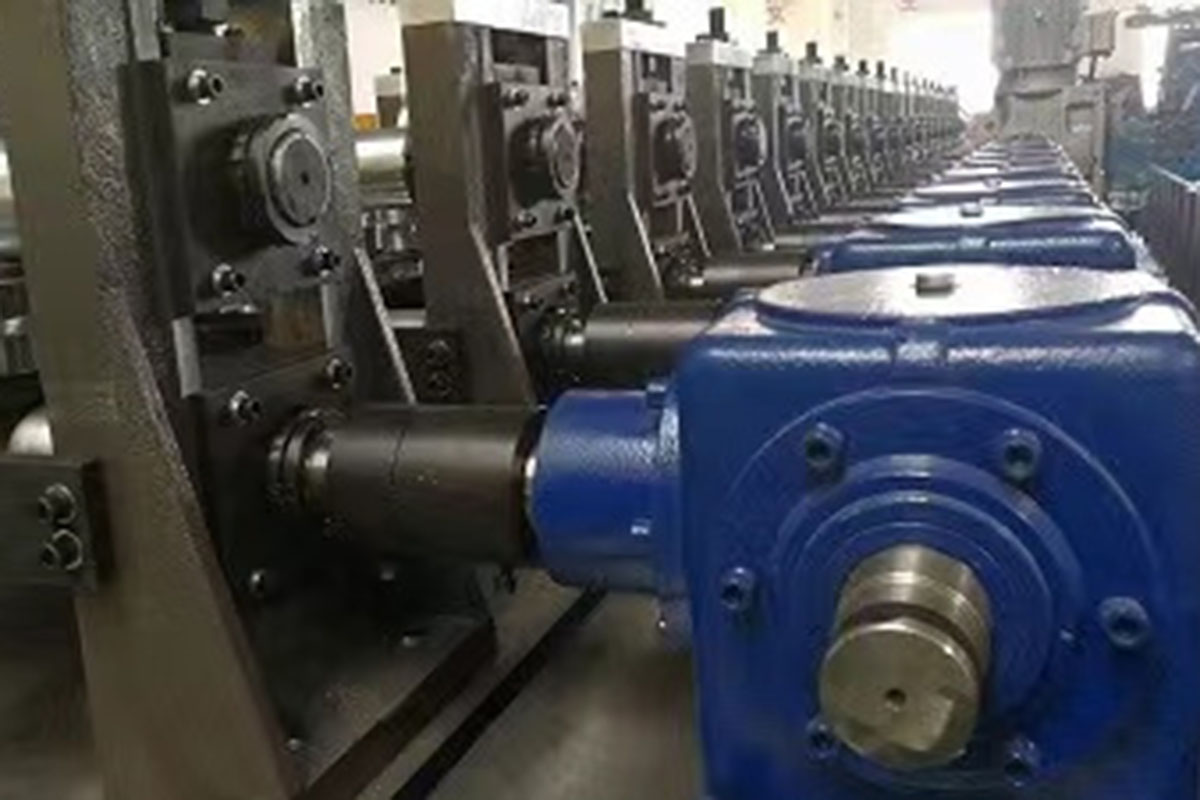 And here we prefer our customers to adopt the gear box drive. Because it can withstand more pressure, ensure the whole production process a higher working efficiency. It’s made of several gear boxes and universal joint drive for each box with the iron cast structure. Also it can be very favorable for later maintenance cause they are separate. So the iron cast and gear box match group offers you the best and strongest configuration for the entire process.