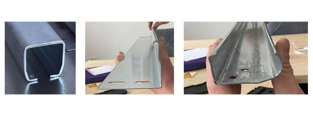 It’s rolled formed 3mm two part galvanized steel complete with wind lock recess, neoprene brush seals internally and externally. It will not only to guide the door, also provide wind resistance and security protection.