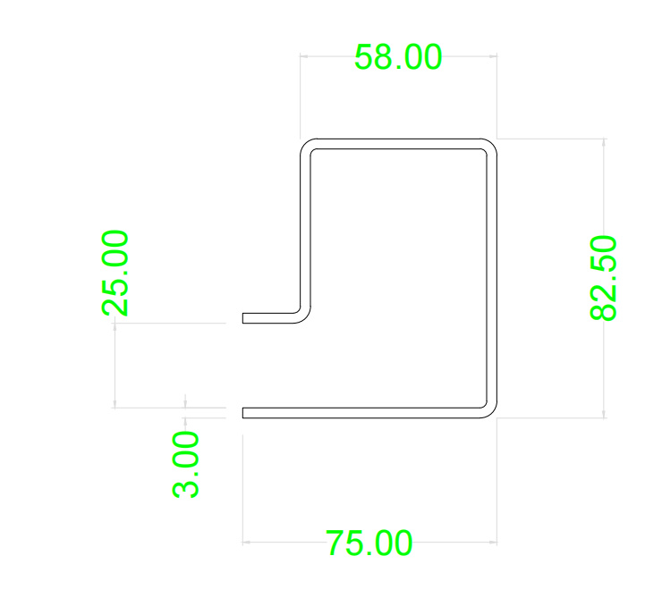 The bottom width is adjustable according to your requirement, the regular sizes for this profile is 75/92/105 to match different sizes door components.