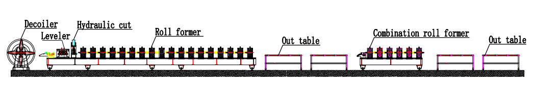 A: Machine’s working speed depends on drawing specially punch drawing. Normally forming speed is around 20m/min. In addition, considering the complicated punch holes, we recommend that you use a separate punch line to increase production speed, and it’s more cost-effective.