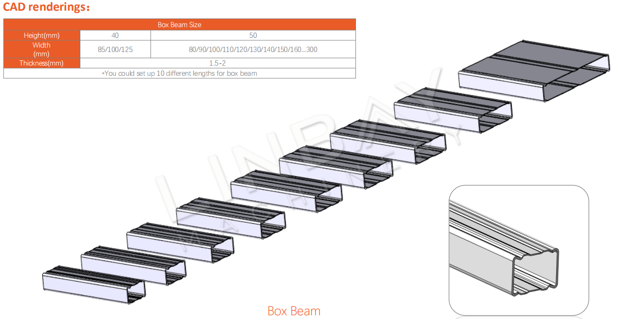 This roll forming machine is built with a robust cast-iron structure, constructed as a single solid piece of iron, ensuring exceptional durability and stability. What sets this machine apart is its automatic size-adjustment function, enabling the production of different-sizes box beams. For instance, the forming stations can move outward on rails to reduce height or inward to increase height. Customers only need to input the desired cutting length and number via the PLC control panel, and the machine will automatically adjust, offering exceptional ease of use and efficiency.