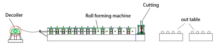 Decoiler-Roll former-Hydraulic cut-Out table