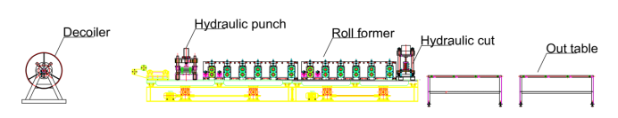 A: Machine’s working speed depends on drawing specially punch drawing. Normally forming speed is around 20m/min. In addition, considering the complicated punch holes, we recommend that you use a separate punch line to increase production speed, and it’s more cost-effective