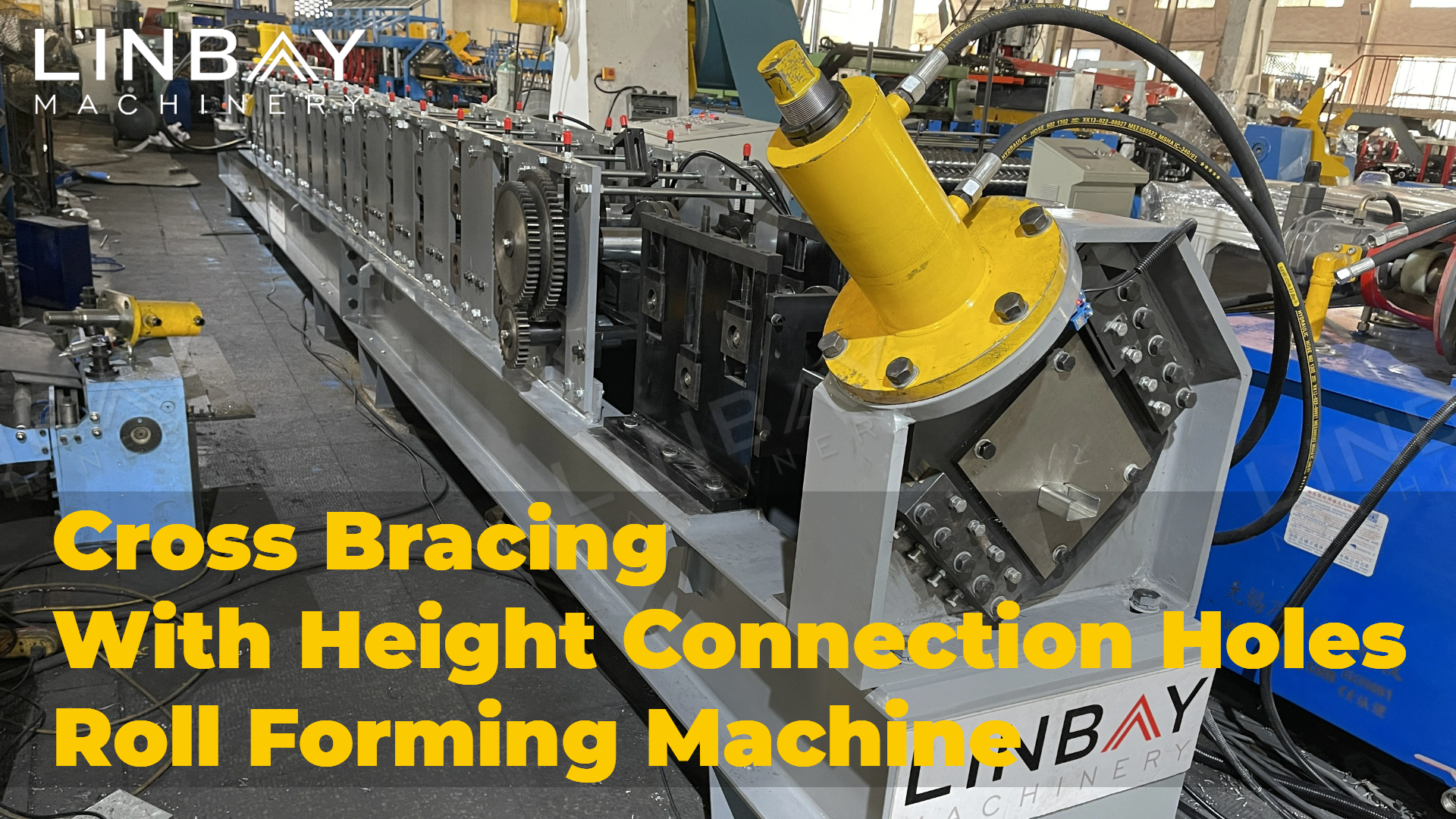 Powered by a hydraulic station, this hydraulic punch machine employs left and right molds for punching, positioning holes precisely at the center line of the height sides after forming. Following cutting, two holes are present at each end of a cross bracing for screw installation. The middle mold on the hydraulic punch can imprint the customer's logo on the steel coil without penetrating, aiding in brand promotion and market expansion.