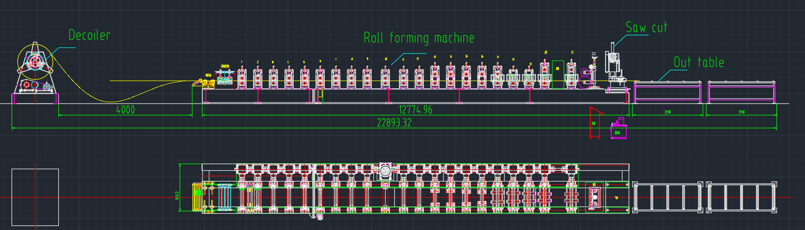 A: Machine’s working speed depends on drawing specially punch drawing. Normally forming speed is around 20m/min. In addition, considering the complicated punch holes, we recommend that you use a separate punch line to increase production speed, and it’s more cost-effective