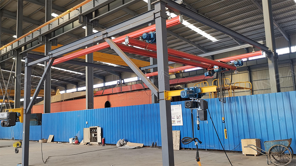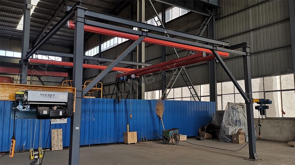 The rails are easy to operate, high load capacity, flexible bends, fully or semi-automatic design, also with double track options, to meet the structural requirements of any workshop, the Demag Cranes system in Germany is a very well known company.