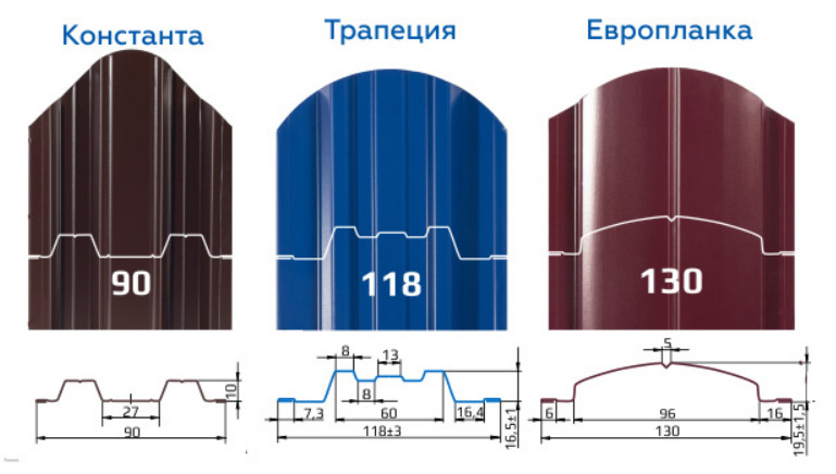 Metal fencing is a modern fencing material that at first glance looks like the familiar wooden fence, but at the same time it has a more aesthetic appearance and does not require meticulous maintenance. The variety of coatings and the presence of a wide range of colors will help you to realize your plans. For soft shapes lovers, we recommend the upper oval cut. Of course it can also be cut directly to a horizontal fence.
