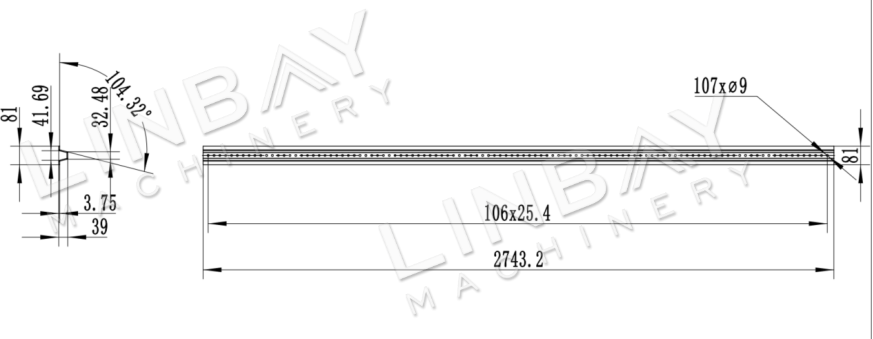 The Trellis U-channel post is a hat-shaped fence post, widely applied in the agricultural sector, such as for grape trellises, apple frames, etc.. It has a top width of 32.48mm, a bottom width of 41.69mm, and a total width of 81mm, with a height of 39mm. Each post is 2473.2mm long and features 107 closely spaced, continuous 9mm diameter holes, facilitating flexible installation of various-sized brackets.