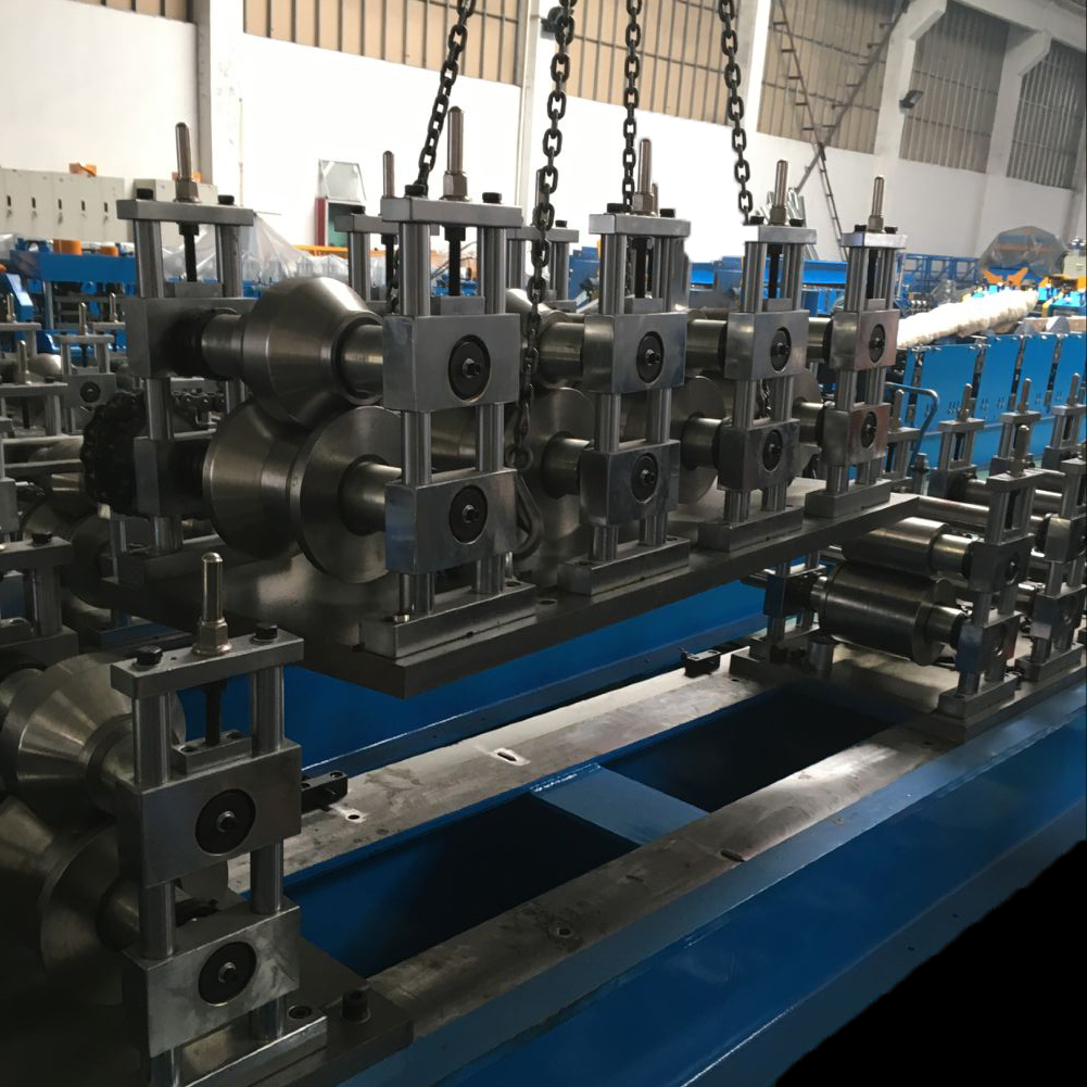 This Steel Silo Roll Forming Machine can produce 4-5mm corrugated sheets. We use forged iron stands and some customers ask gearbox driving system to mantain the machine work stablely.