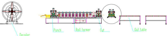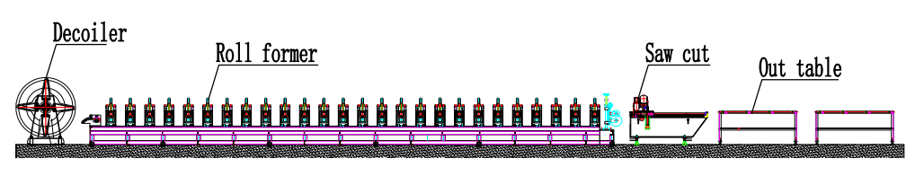 Decoiler-Guiding-Leveler-Pre Punching-Roll former-Welder-Hydraulic cut-Out table