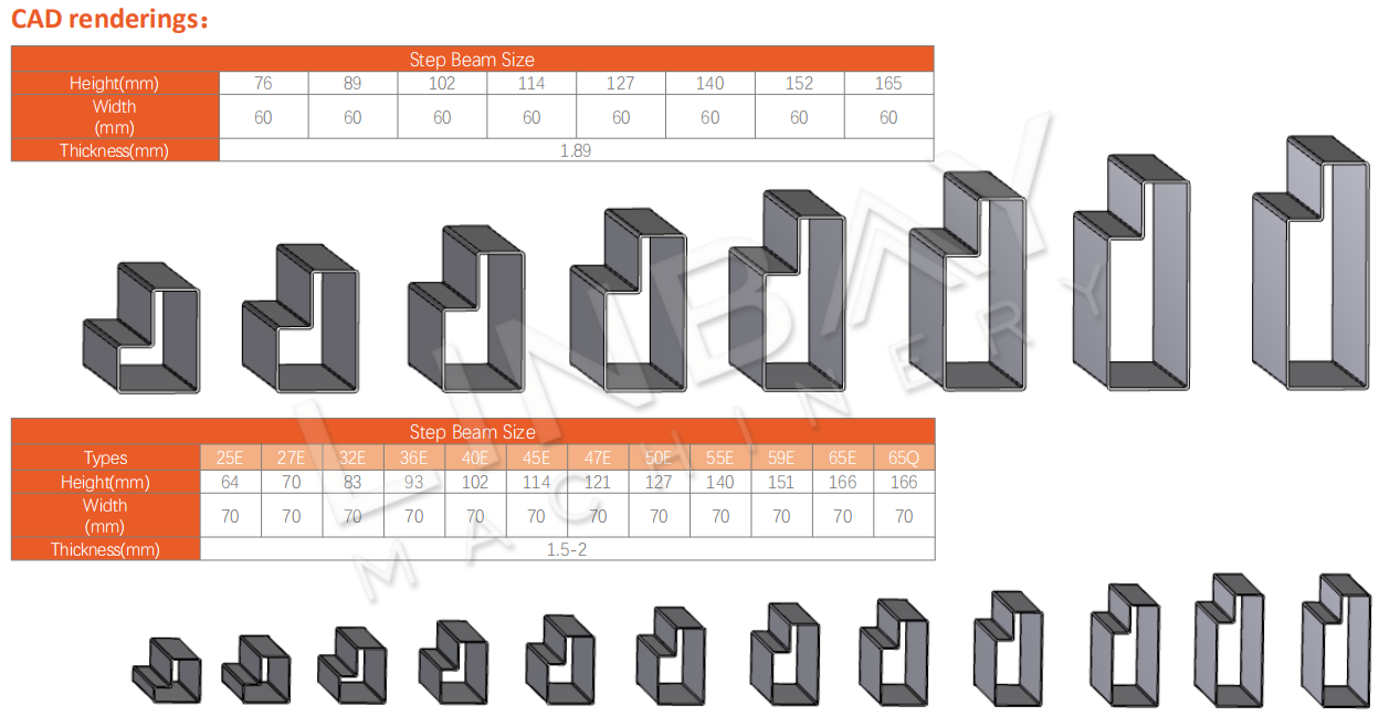 For every 10mm of height of the largest step beam required to be produced, the diameter of the key forming roller must also be increased by 10mm. This is also one of the factors that affects the price of the machine, because the material used for the rollers will increase.