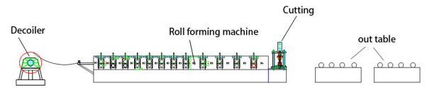 Decoiler--Roll former--Roller 2--Hydraulci cut --Wastage collector--Out Table